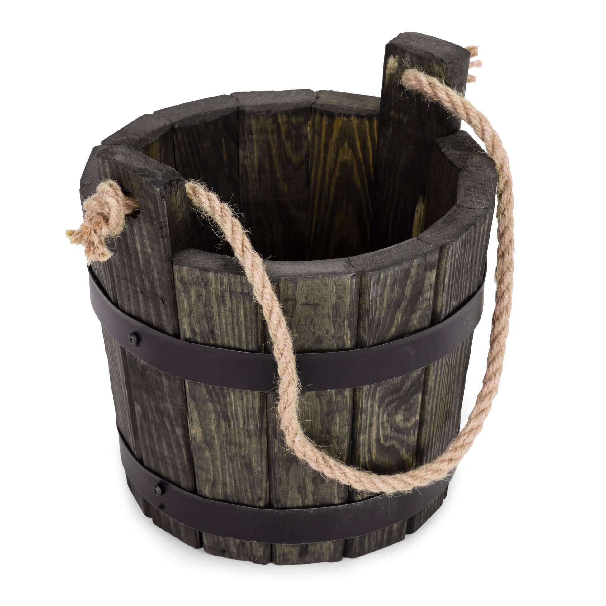 Drewniane wiaderko wyposażone jest w solidny, gruby sznur, który zapewnia wygodne przenoszenie oraz umożliwia zawieszenie. Doniczka nie ma otworu drenażowego więc staje się wodoszczelna podczas codziennego użytkowania.