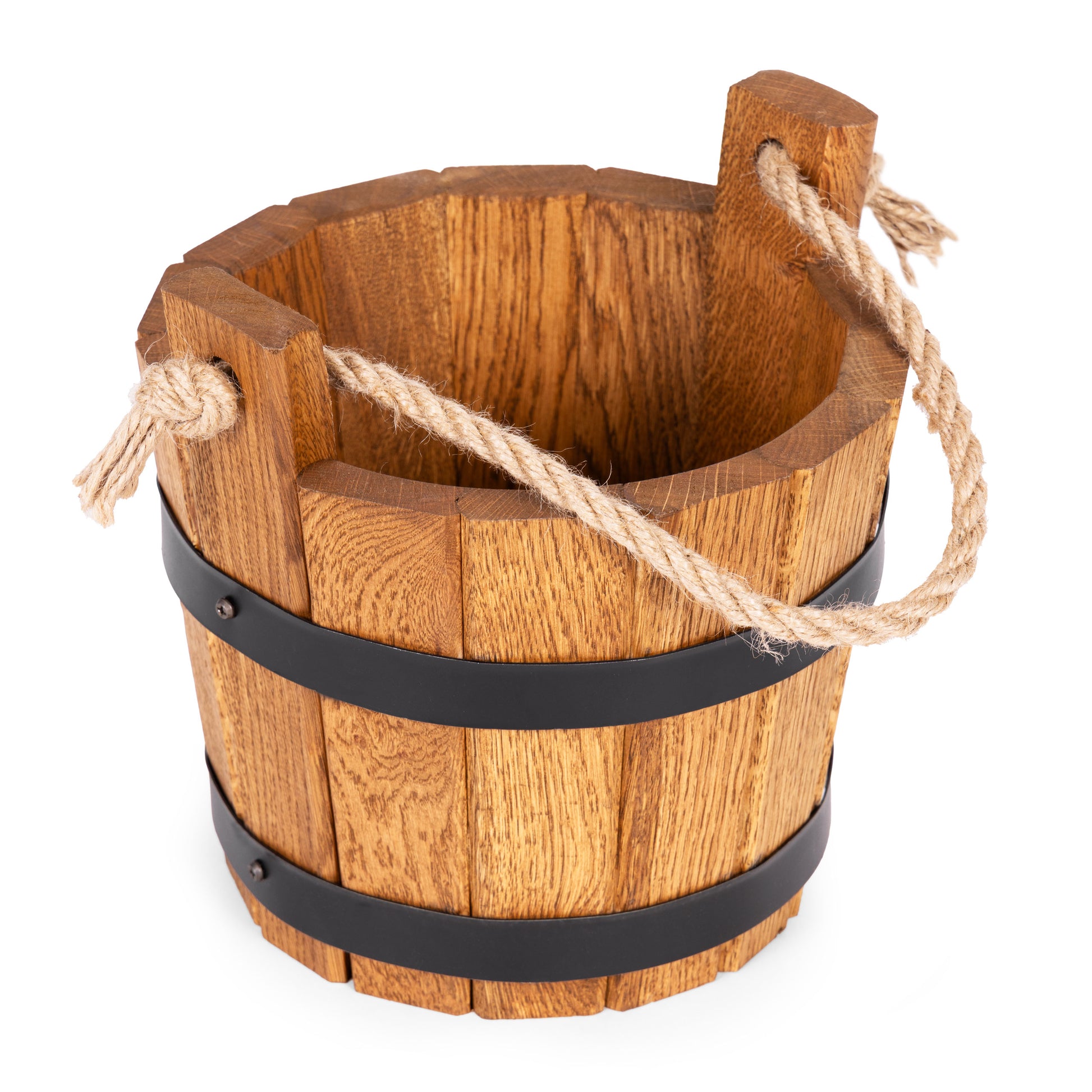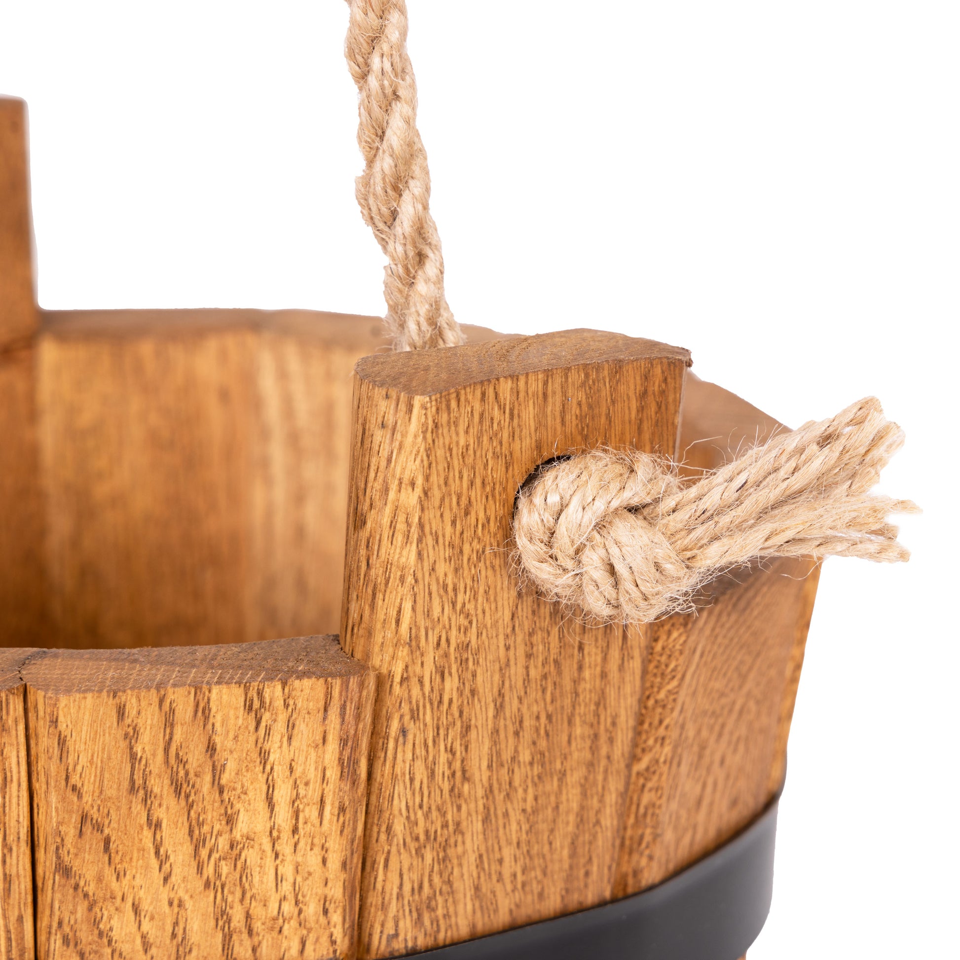 Drewniane wiaderko wyposażone jest w solidny, gruby sznur, który zapewnia wygodne przenoszenie oraz umożliwia zawieszenie. Doniczka nie ma otworu drenażowego więc staje się wodoszczelna podczas codziennego użytkowania.