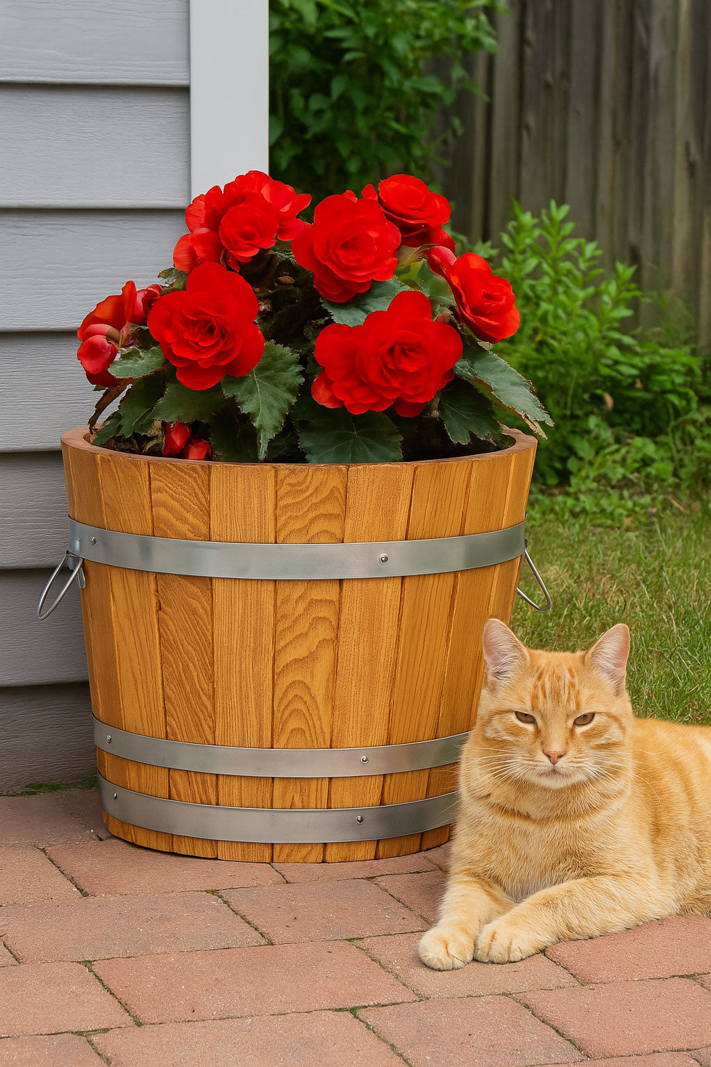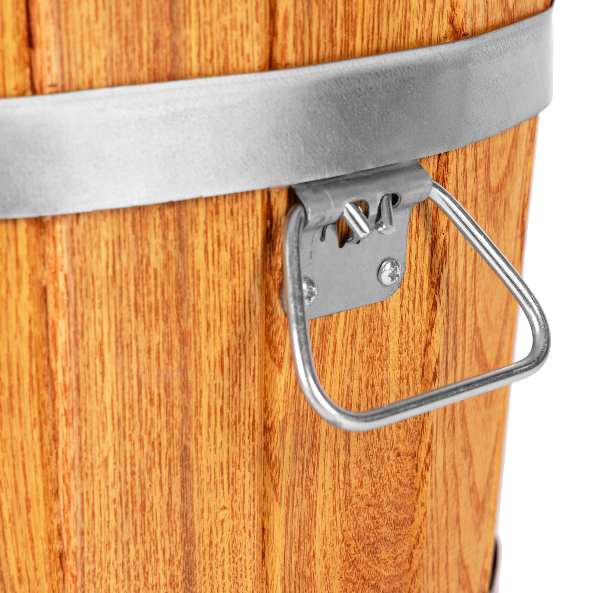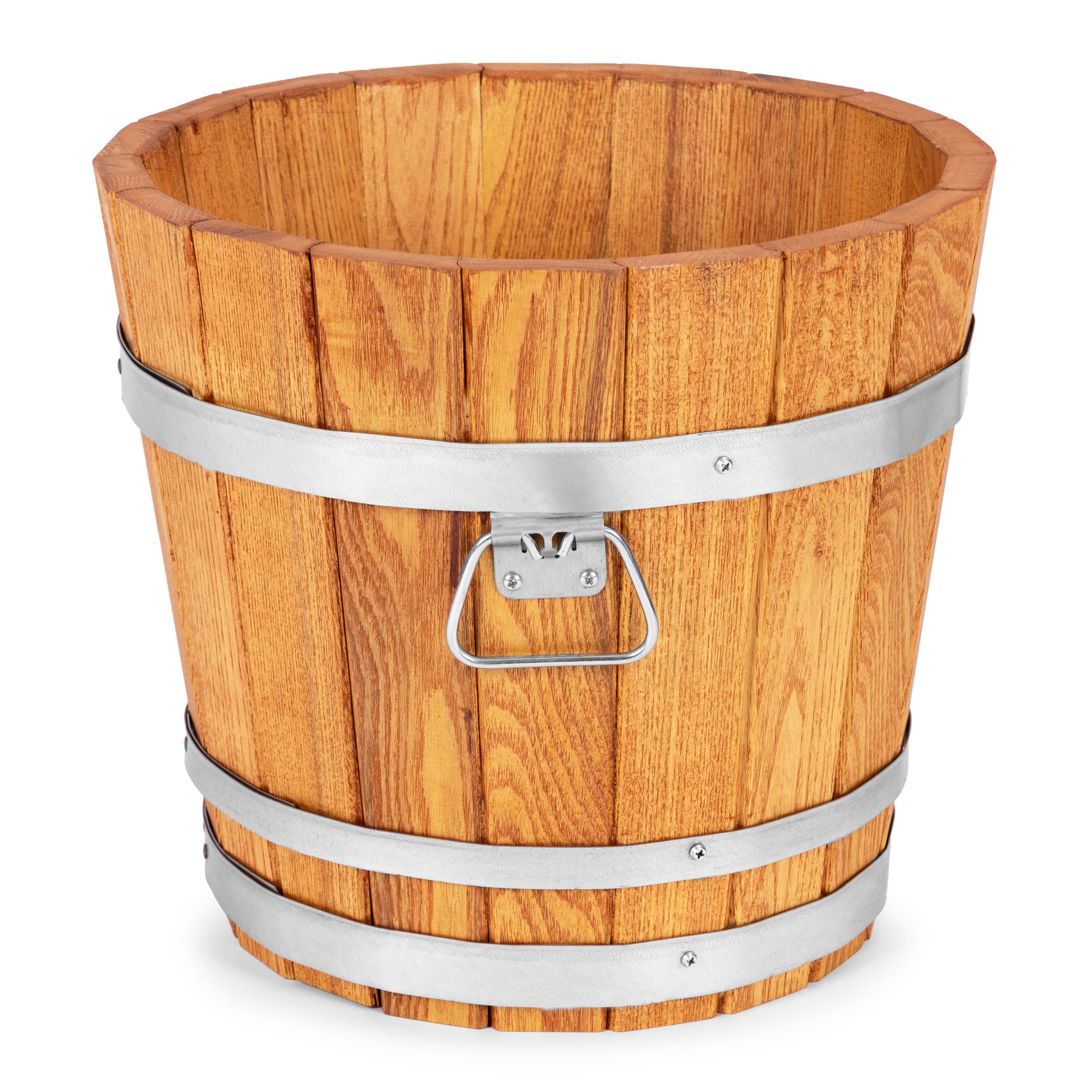 Solidna i stylowa okrągła donica ogrodowa doskonałej jakości wykonana z litego drewna. Kształt beczki nadaje jej klasyczny wygląd, a obręcze zapewniają trwałość i stabilność.