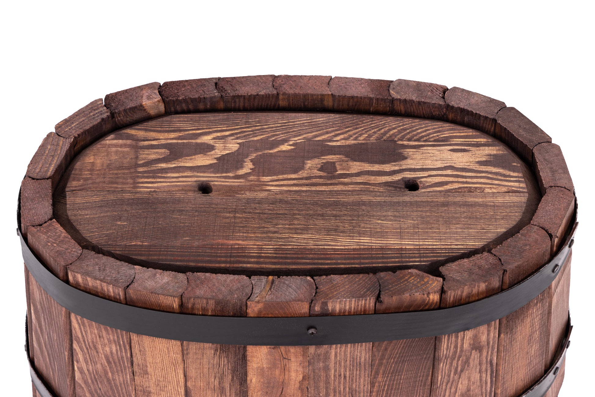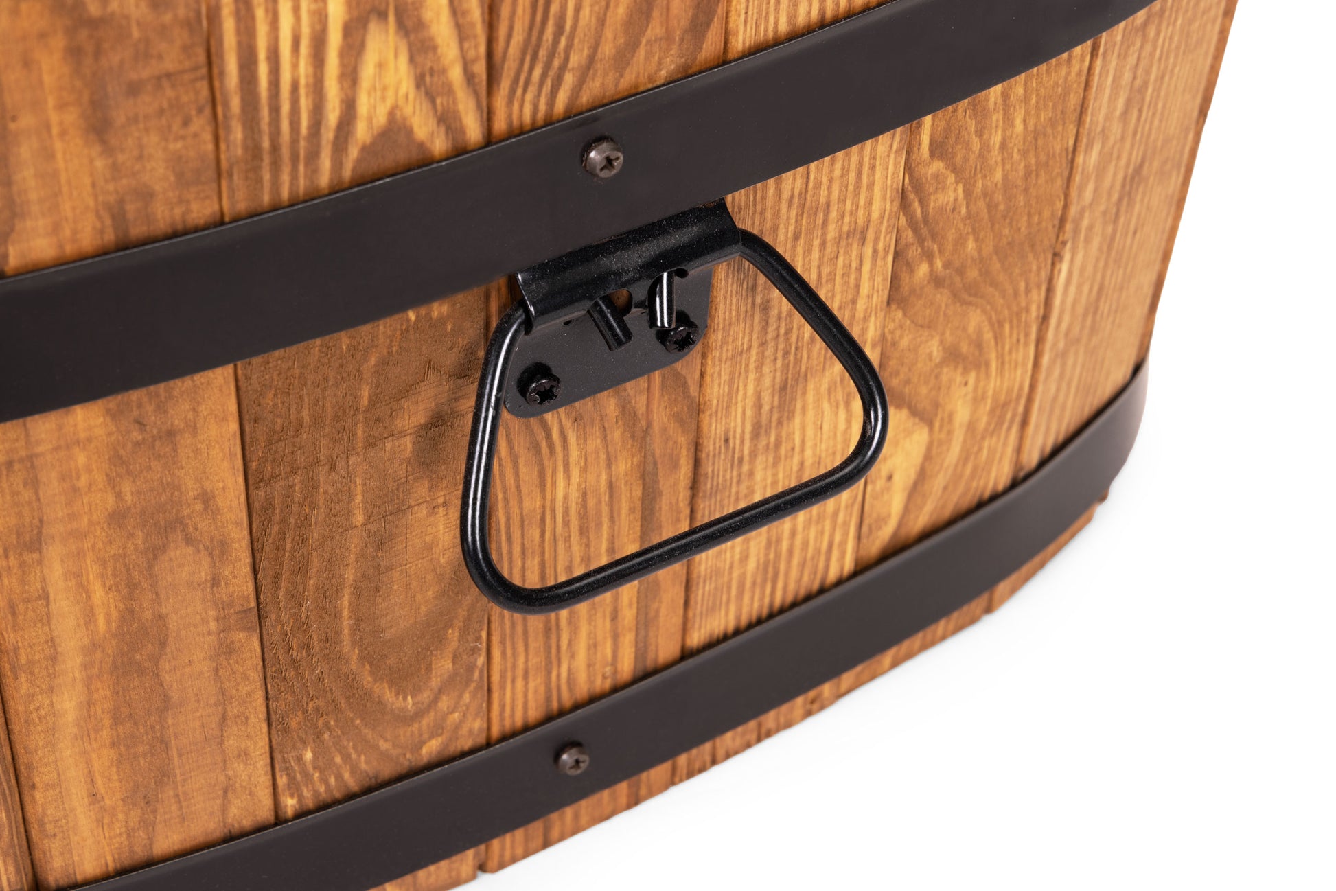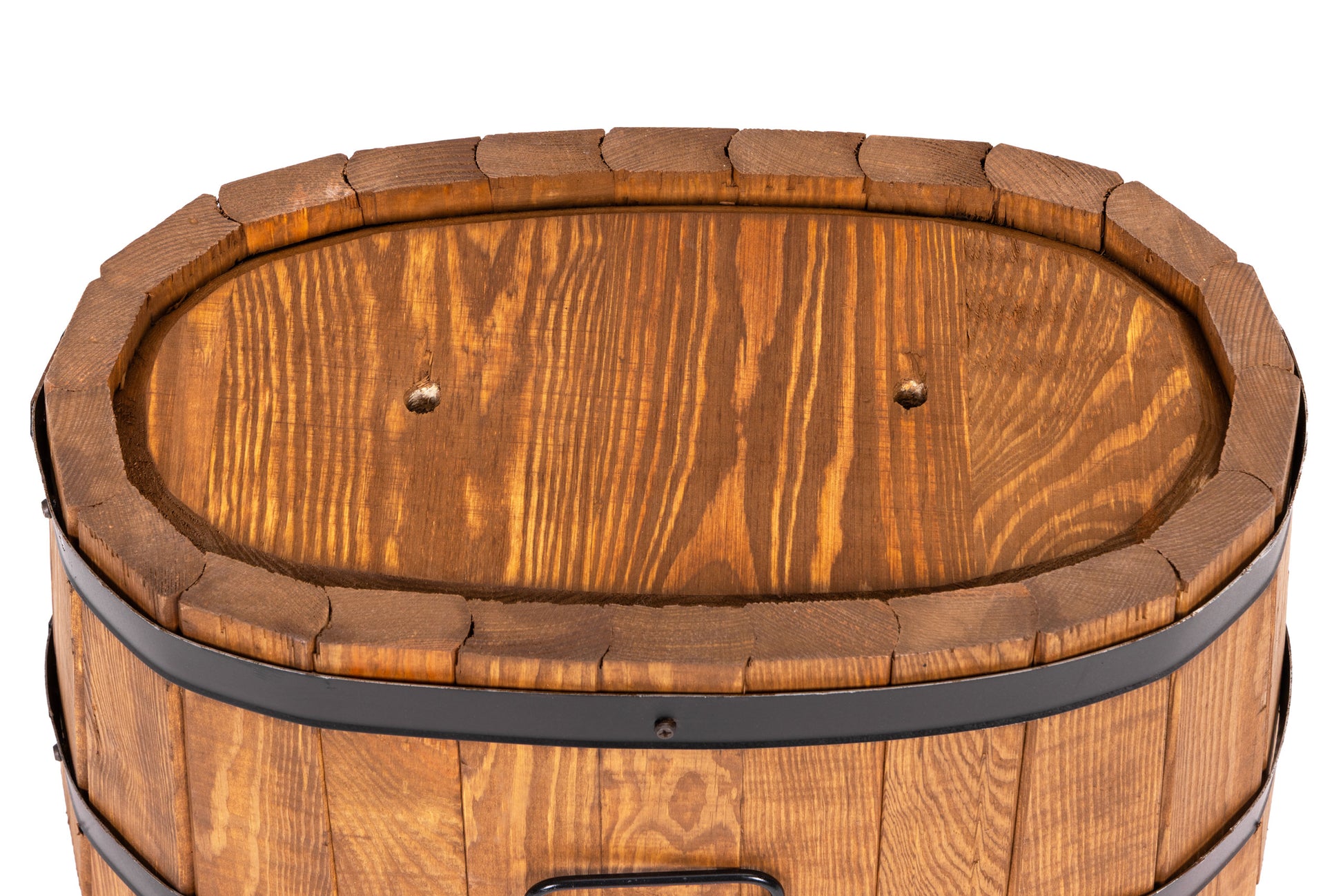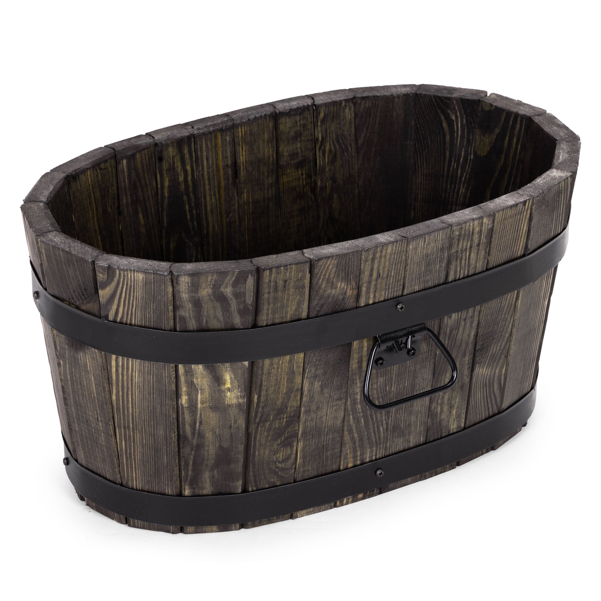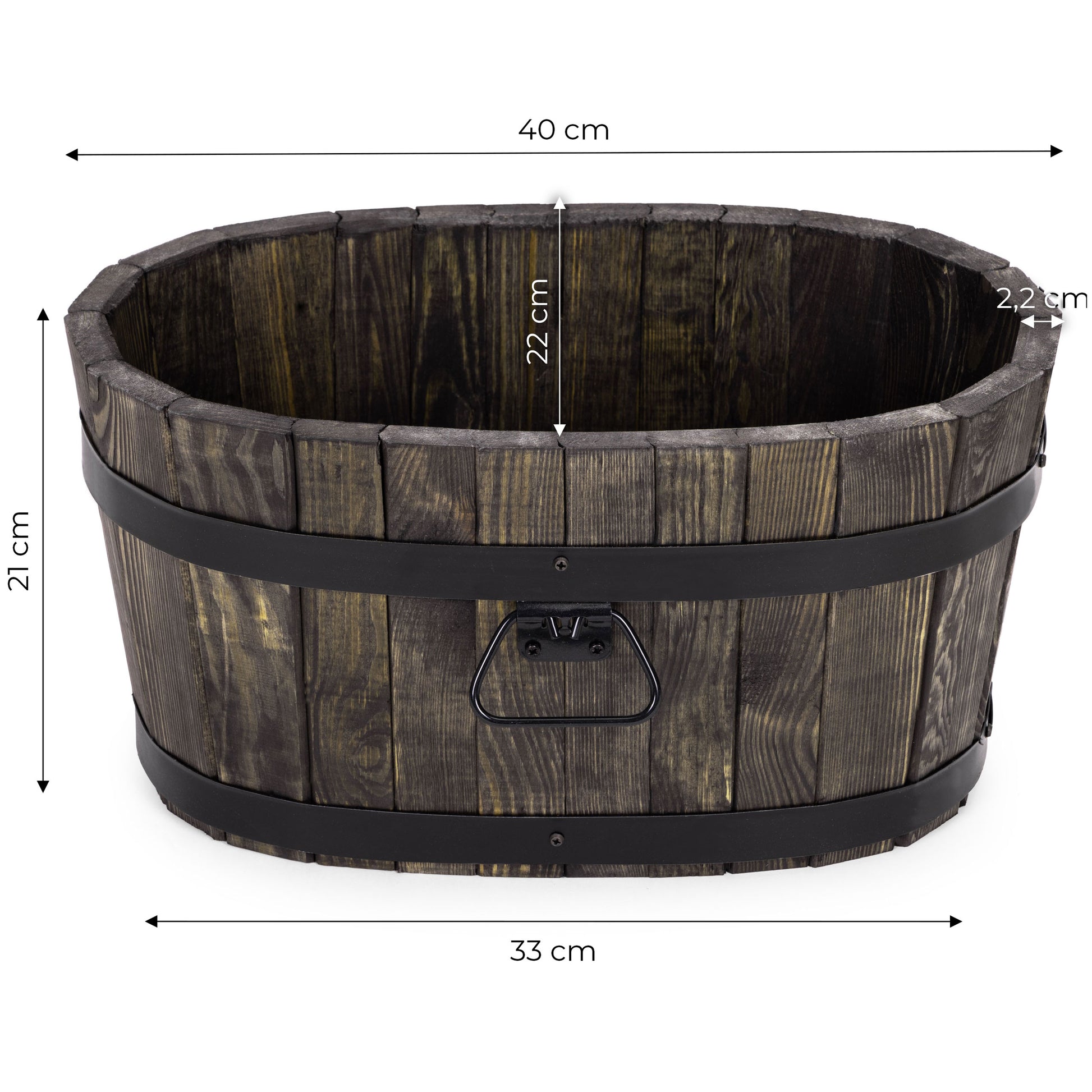 Solidna i stylowa okrągła donica ogrodowa doskonałej jakości wykonana z litego drewna. Kształt beczki nadaje jej klasyczny wygląd, a obręcze zapewniają trwałość i stabilność.